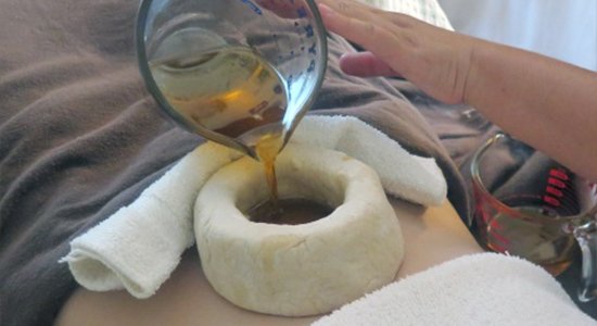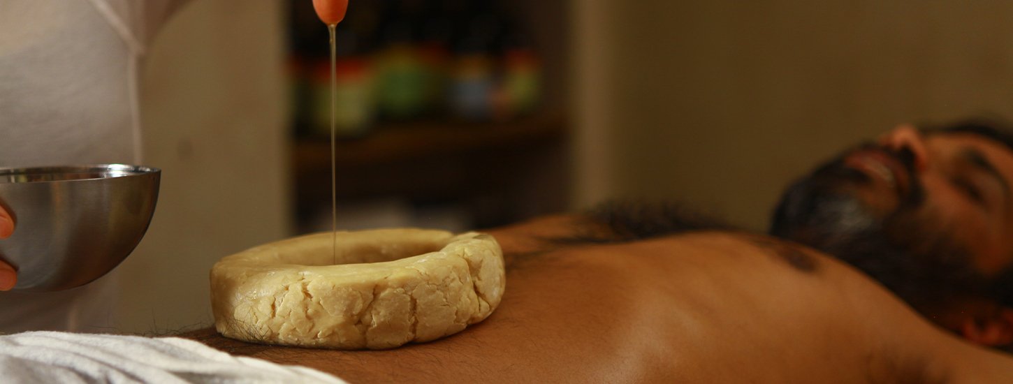 The phrase Chakra Basti is from Sanskrit. The word Chakra means wheel or disk and Basti stands for a Container or retaining something inside. Chakra basti, also called nabhi basti (navel basti), is applied to the umbilical region. Nabhi the umbilicus is considered as marma in Ayurveda. The Chakra Basti is performed by filling the hot medicated oil or ghee in this dam either by gently pouring or squeezed in with cotton gauze. When the oil or ghee cools down it is squeezed out and replaced with more warm ones. The procedure does local oleation and local sudation simultaneously.
