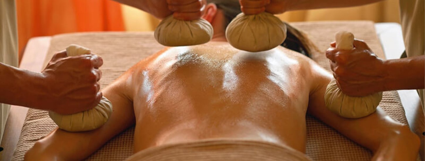 Kizhi means poultice in Malayalam (the language of Kerala in South India). In Sanskrit, it is known as Pinda Sweda. A Kizhi is a poultice that is densely packed with herbal ingredients and heated in warm herbal oil throughout the treatment. The Kizhi is massaged over the affected area or the whole body as required.